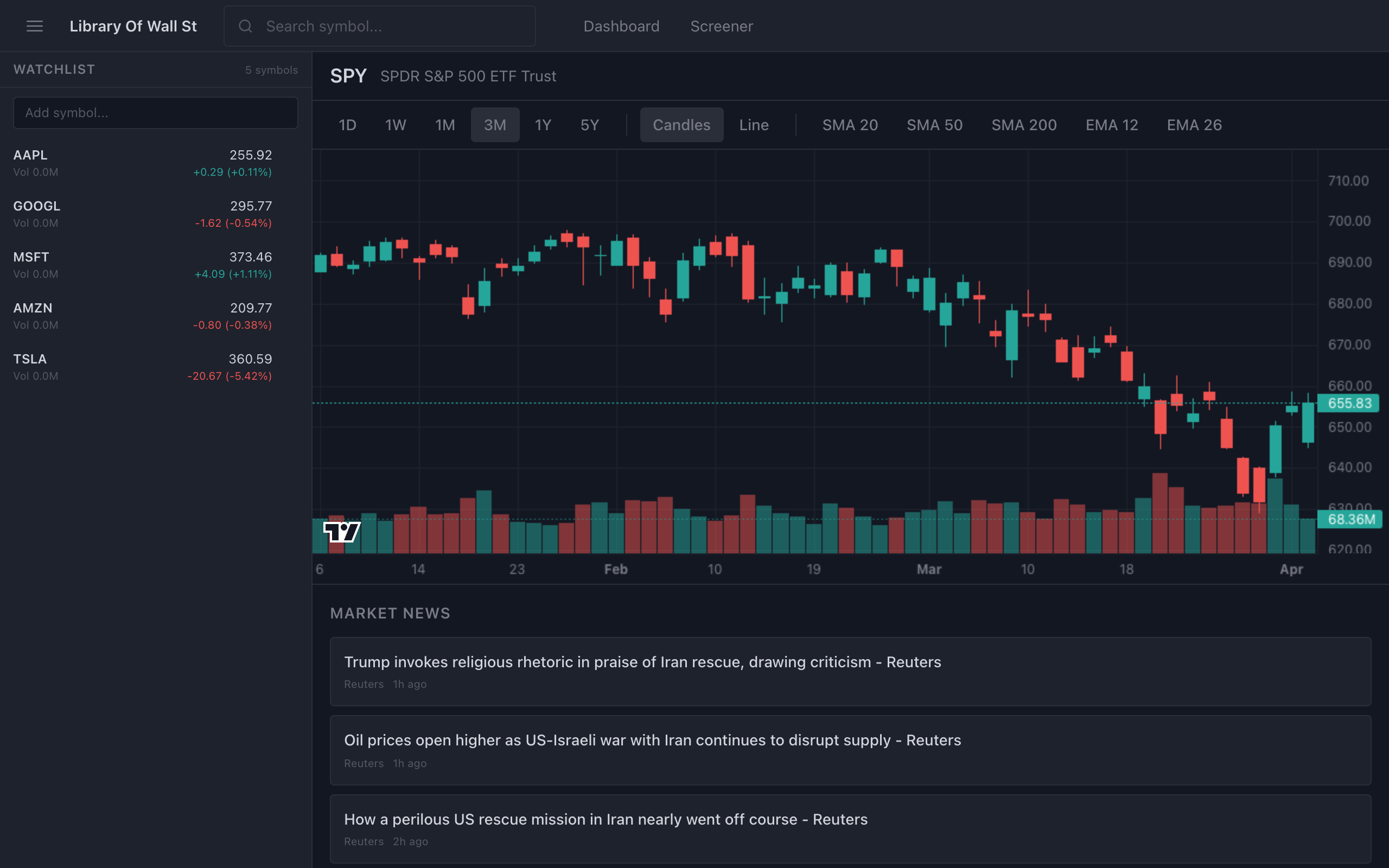 A financial market data platform providing real-time quotes, interactive charts, a stock screener, and curated market news.